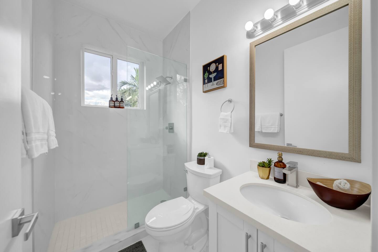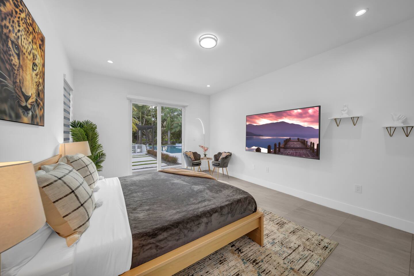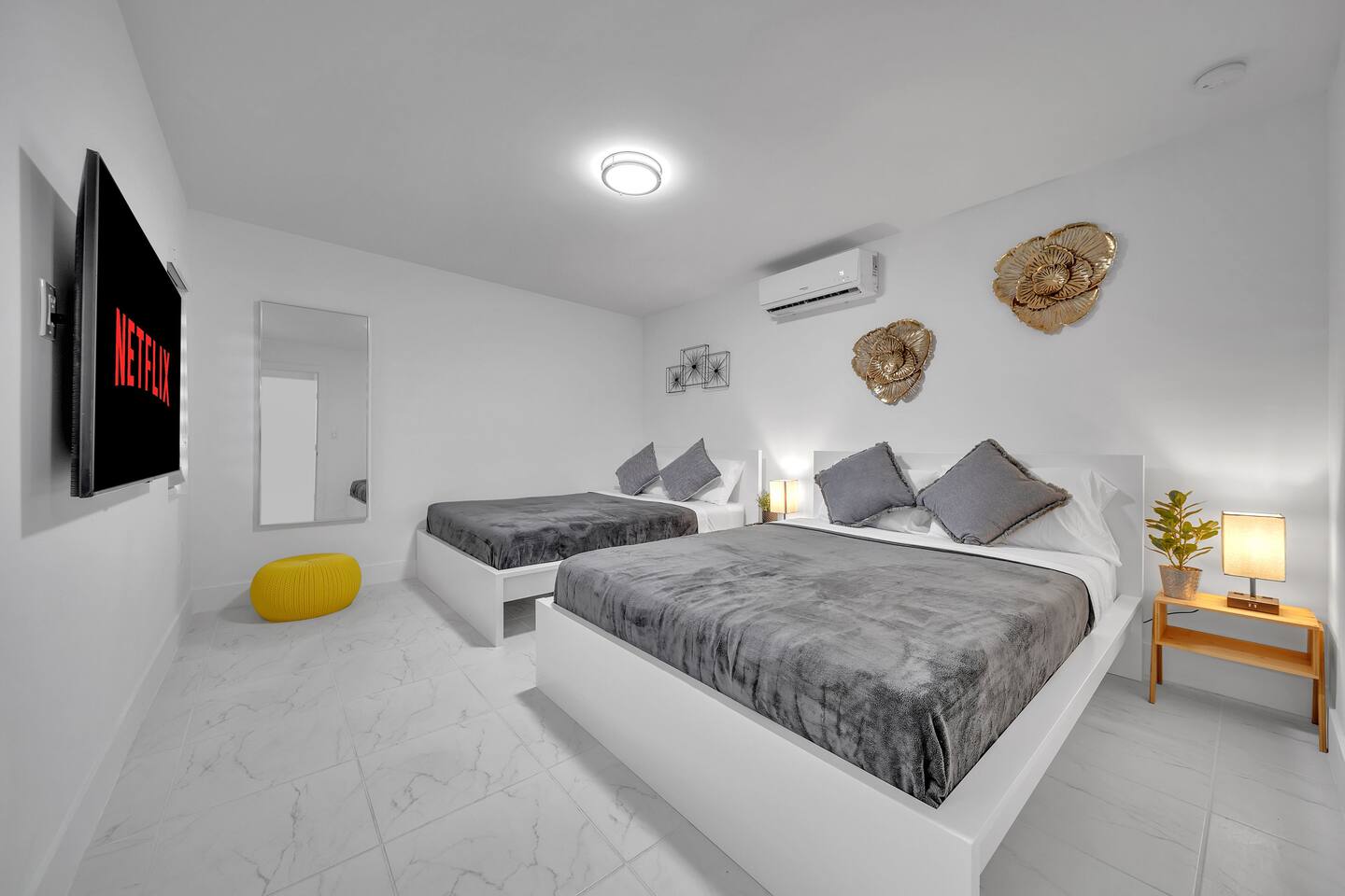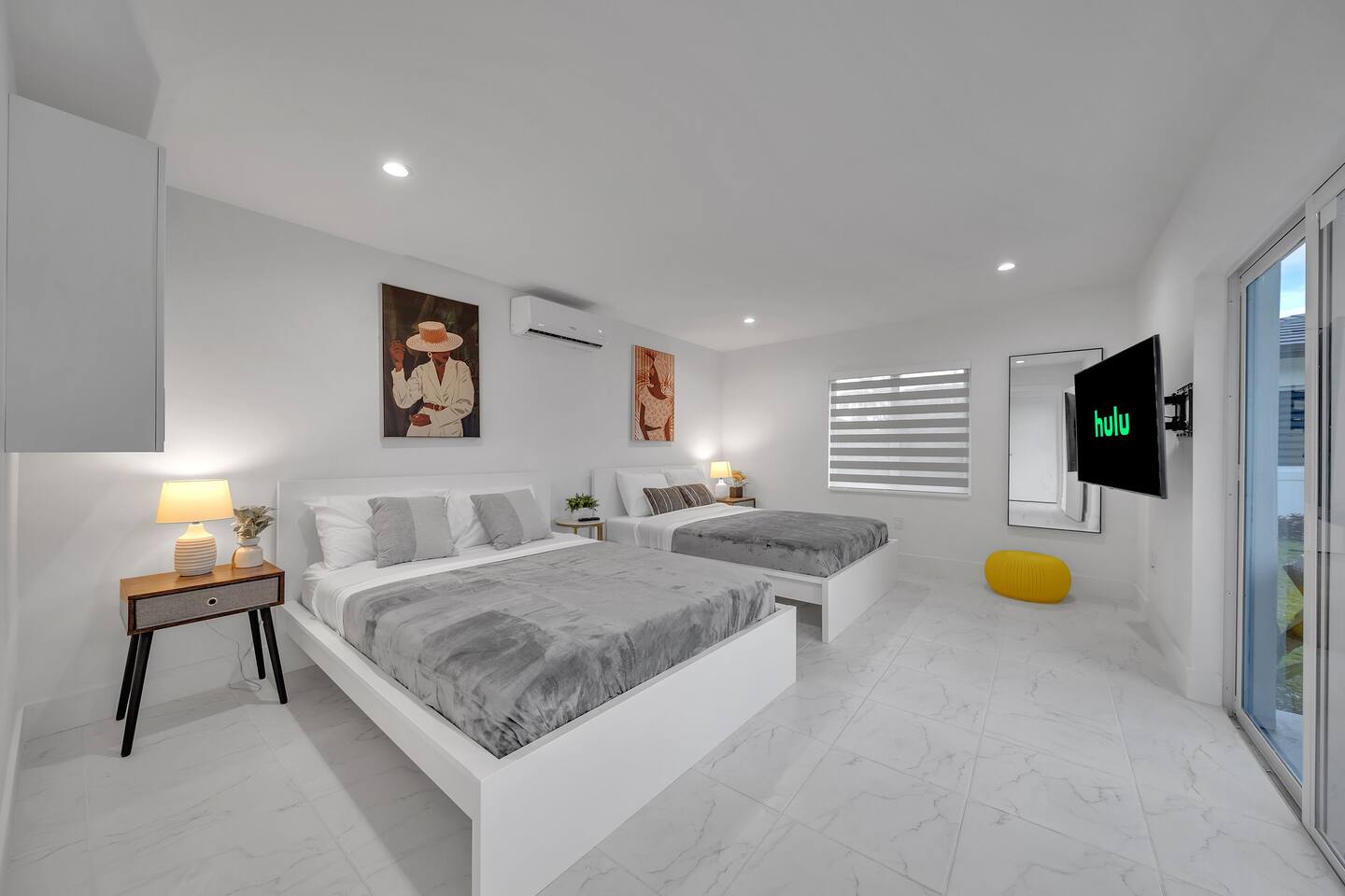 • 30 minutes to South Beach or Brickell • 20 minutes to Miami International & Fort Lauderdale Airports • 15 minutes to Wynwood & Design District • 10 minutes to Oleta River Park & Haulover Park • 10 minutes to Hard Rock Stadium 🚫 Parties & Noise • No parties, receptions, or events allowed 🔕 . Violations result in immediate termination • Quiet hours start at 10 PM • No Smoking: Prohibited indoors, near mini golf and outdoor furniture. Penalty 🚭 $5,000 🛌 Sleep Main House • Room 1: 1 King Bed • Room 2: 1 Queen Bed • Room 3: 1 Queen Bed • Room 4: 1 Queen Bed • Room 5: 1 Queen Bed • Common Area: 2 Twin Rollaway Beds Detached Guest House • Room 6: 2 Queen Bed • Room 7: 2 Queen Bed Smart TV and a complete linen set in each bedroom 🛁 4 Bathrooms - each stocked with: • Shampoo, conditioner, body wash • Towels and washcloths • Hairdryer • Beach and pool towels 🍽 Kitchen & Dining • Fully equipped kitchen • Modern appliances, including a drip coffee maker & a blender • Indoor dining table for 8 guests, plus additional outdoor dining areas 🧺 Laundry • Washer & dryer with detergent 🌴 Outdoor Amenities • Heated Pool & Jacuzzi (4hr notice required for preheat) • Basketball hoop, shuffleboard, mini golf, bocce, chessboard, and cornhole • Chaise lounges, covered patio • Canal views and shaded sitting areas 🐾 Pet Policy • Pets are allowed with prior approval • Additional $150 cleaning fee 📺 Entertainment & Connectivity • All TVs are Smart with streaming access • High-speed Wi-Fi throughout 1000MBPS 📋 Important Notes • Check-in: 4:00 PM | Check-out: 10:00 AM • Jacuzzi: (On request ) • Surveillance: Entry/exit points only (no indoor cameras) 🧹 Services & Maintenance • Landscaping: Weekly (Wednesdays/Thursdays) • Pool Service: Weekly (Wednesdays/Thursdays) • Garbage Collection: Mondays & Thursdays 🚗 Getting Around • Uber or by car. The property offers 4-car gated driveway parking (no street parking permitted).