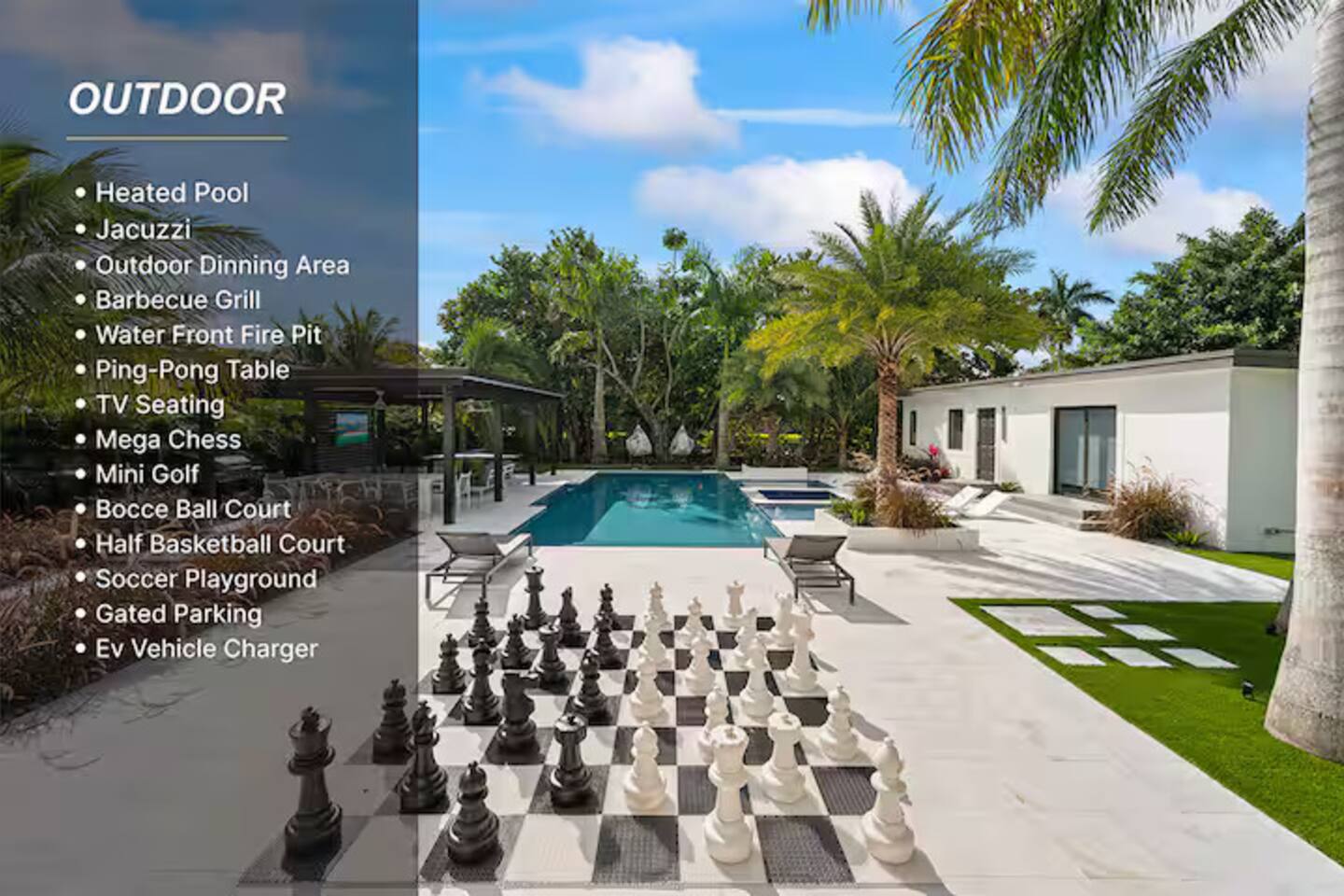 Dear Guests, Welcome to a Private 7-bedroom canal waterfront property. It features a heated pool with a jacuzzi, a BBQ, a basketball court and various outdoor games. It’s a great place for family getaways or group stays, offering spacious backyard amenities in a private setting.
