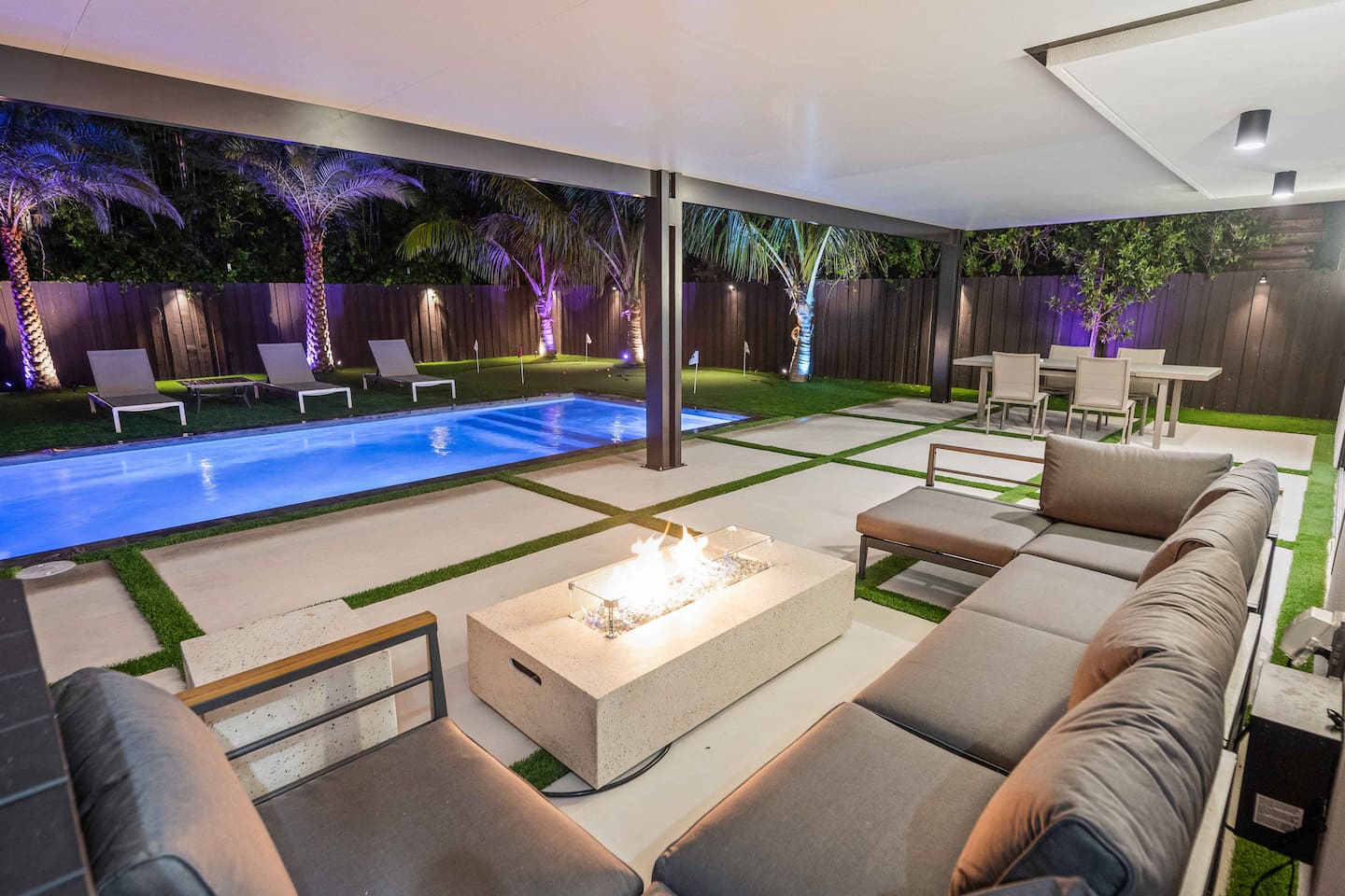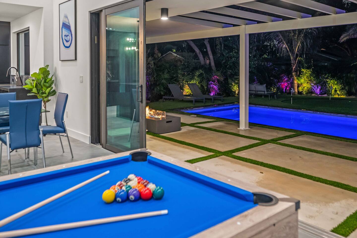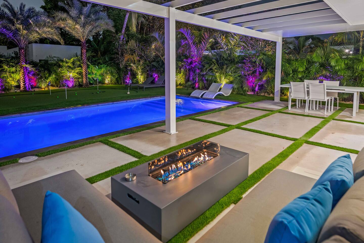 • 15 minutes to South Beach • 10 minutes to Brickell & Downtown • 10 minutes to Miami International Airport • 5 minutes to Wynwood & Design District 🛌 Sleep • Room 1: 1 King Bed • Room 2: 1 Queen Bed • Room 3: 1 Queen Bed • Room 4: 1 Queen Bed • Room 5: 1 Queen Bed • Common Area: 2 Twin Rollaway Beds Smart TV and a complete linen set in each bedroom 🛁 2.5 Bathrooms - each stocked with: • Shampoo, conditioner, body wash • Towels and washcloths • Hairdryer • Beach and pool towels 🍽 Kitchen & Dining • Fully equipped kitchen • Modern appliances, including a drip coffee maker & a blender • Indoor dining table for 8 guests, plus additional outdoor dining areas 🧺 Laundry • Washer & dryer with detergent 🌴 Outdoor Amenities • Pool • BBQ Grill • Fireplace • Covered patio • Mini golf and cornhole • Chaise lounges 🚫 Parties & Noise • No parties, receptions, or events allowed • Quiet hours start at 10 PM • Violations may result in immediate termination and fines 🐾 Pet Policy • Pets are allowed with approval • Additional $100 cleaning fee 📺 Entertainment & Connectivity • All TVs are Smart with streaming access • High-speed Wi-Fi throughout 1000MBPS 📋 Important Notes • Check-in: 4:00 PM | Check-out: 10:00 AM • Surveillance: Entry/exit points only (no indoor cameras) 🧹 Services & Maintenance • Landscaping: Weekly (Wednesdays/Thursdays) • Pool Service: Weekly (Wednesdays/Thursdays) • Garbage Collection: Mondays & Thursdays 🚗 Getting Around • Uber or by car. The property offers 2-car gated driveway parking (no street parking permitted).