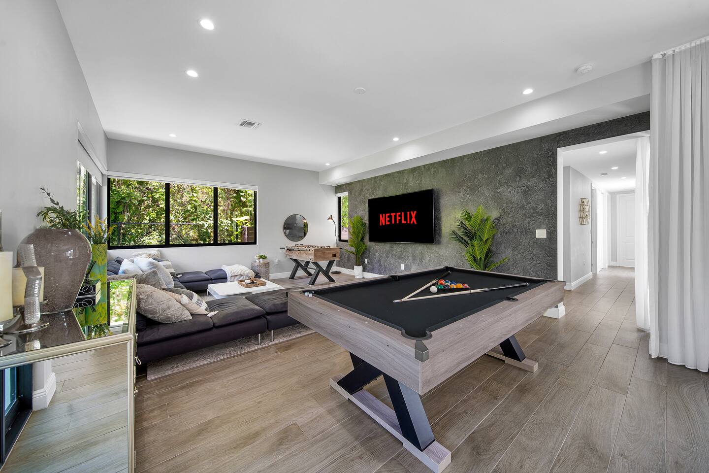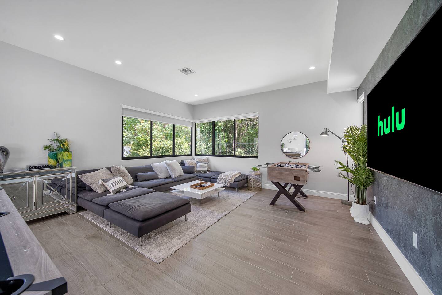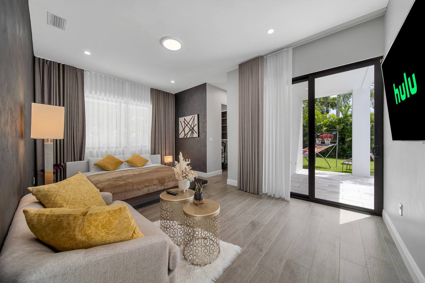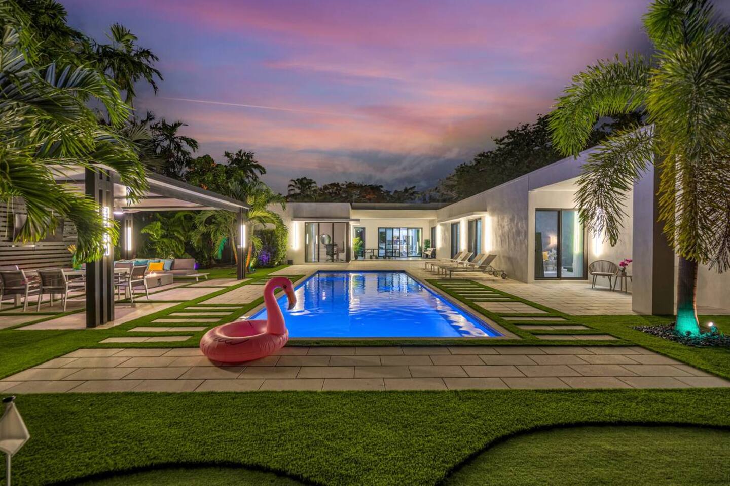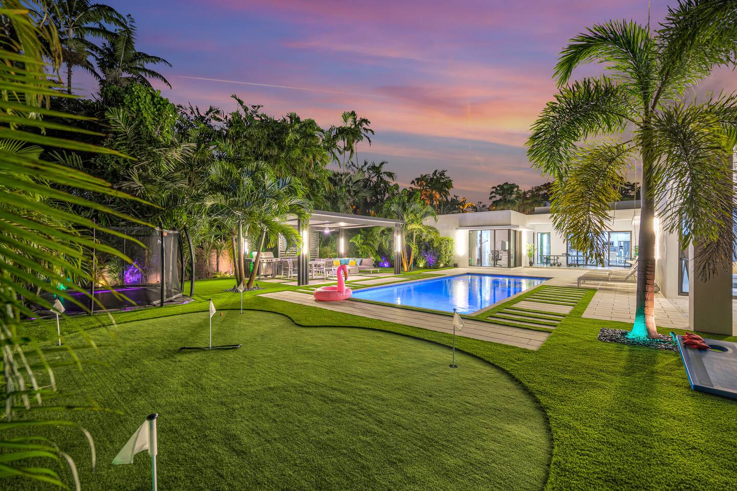 • 25 minutes to South Beach or Brickell • 20 minutes to Miami International & Fort Lauderdale Airports • 15 minutes to Wynwood & Design District • 10 minutes to Oleta River Park & Haulover Park • 10 minutes to Hard Rock Stadium 🛌 Sleep • Room 1: 1 King Bed • Room 2: 1 King Bed • Room 3: 1 Queen Bed • Room 4: 2 Single Beds • Common Area: 2 Twin Rollaway Beds Smart TV and a complete linen set in each bedroom 🛁 3.5 Bathrooms - each stocked with: • Shampoo, conditioner, body wash • Towels and washcloths • Hairdryer • Beach and pool towels 🍽 Kitchen & Dining • Fully equipped kitchen • Modern appliances, including a drip coffee maker & a blender • Indoor dining table for 6 guests, plus additional outdoor dining areas 🧺 Laundry • Washer & dryer with detergent 🌴 Outdoor Amenities • Heated Pool (4-hour notice required for preheat) • Basketball hoop, shuffleboard, mini golf • Chaise lounges, covered patio • Fireplace 🚫 Parties & Noise • No parties, receptions, or events allowed • Quiet hours start at 10 PM • Violations may result in immediate termination and fines 🐾 Pet Policy • Pets are allowed with approval • Additional $85 cleaning fee 📺 Entertainment & Connectivity • All TVs are Smart with streaming access • High-speed Wi-Fi throughout 1000MBPS 📋 Important Notes • Check-in: 4:00 PM | Check-out: 10:00 AM • Surveillance: Entry/exit points only (no indoor cameras) 🧹 Services & Maintenance • Landscaping: Weekly (Wednesdays/Thursdays) • Pool Service: Weekly (Wednesdays/Thursdays) • Garbage Collection: Mondays & Thursdays 🚗 Getting Around • Uber or by car. The property offers 4-car private driveway parking (no street parking permitted). Guest access